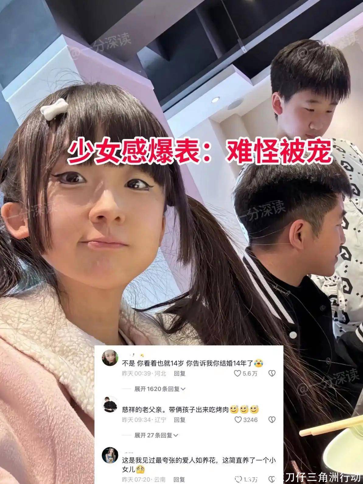 近日,黑龙江有一名38岁的女子,其呈现出“幼态”的打扮,她被自己的老公宠溺得如同宝贝一般,明明已经38岁了可模样看上去却宛如一位14岁的少女。见此情形网友们炸开了锅,纷纷说道:“少女感十足啊,我当时还以为那是父女俩呢!”。